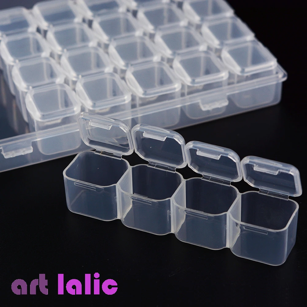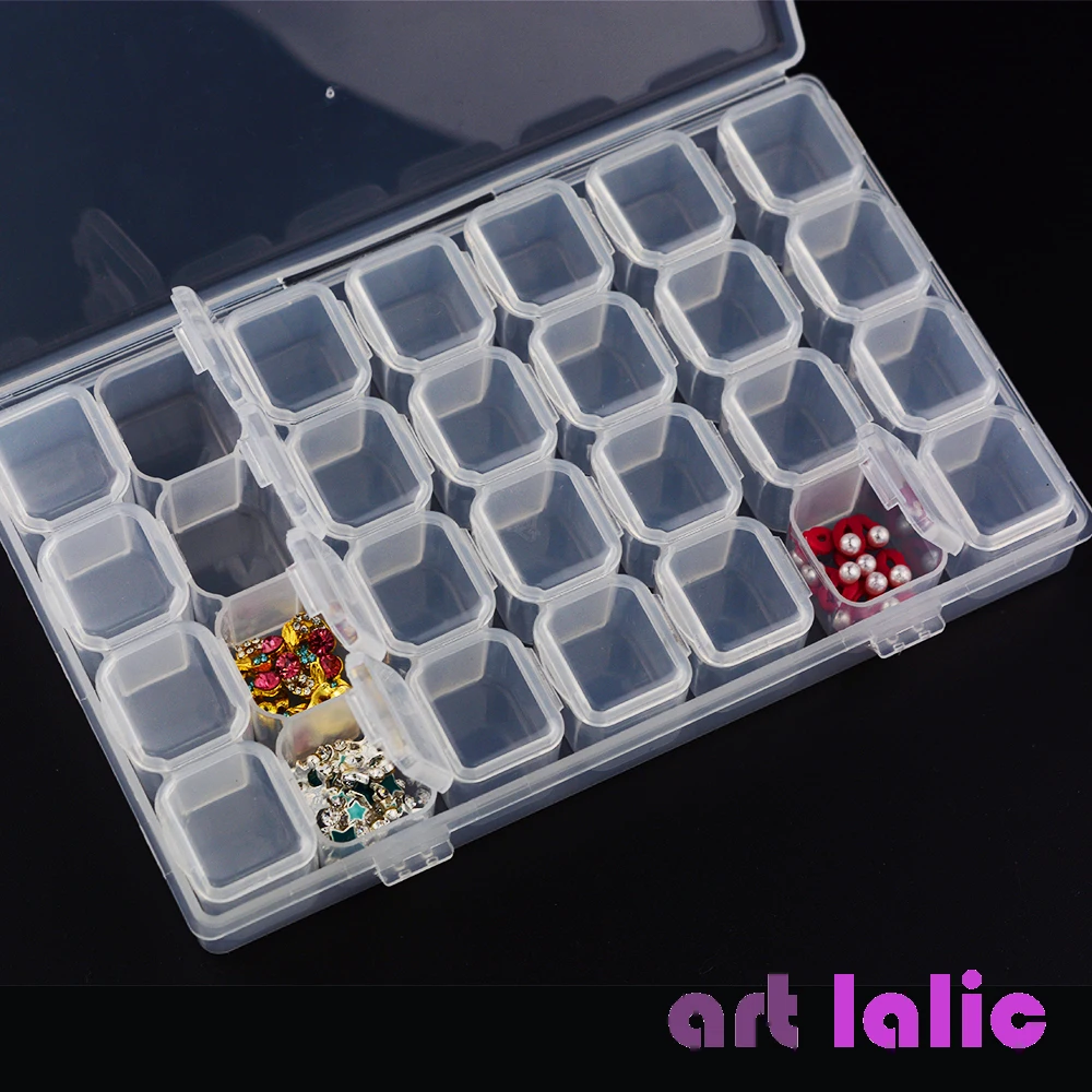 28 Grids Separate Slots Empty Storage Box Grids Clear Nail Art Rhinestones Tools Jewelry Beads Display Storage Case Organizer